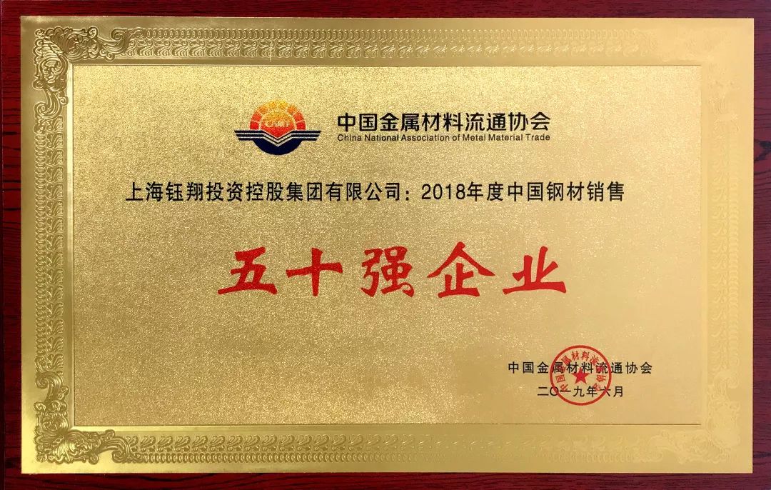 會上頒發(fā)了一系列鋼鐵行業(yè)內(nèi)的年度大獎,鈺翔控股集團(tuán)憑借在鋼鐵智慧供應(yīng)鏈領(lǐng)域取得的成果、實力和口碑榮獲中國金屬材料流通協(xié)會2018年度中國鋼材銷售50強、2018年度中國鋼鐵供應(yīng)鏈建設(shè)示范企業(yè)兩項殊榮。